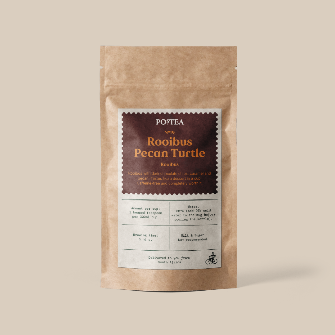 Three teas that between them cover every base of a proper afternoon tea. A classic English Breakfast that holds its own against anything you'd be served on a tiered stand. An Earl Grey Moonlight that takes the familiar bergamot you know and softens it — rounder, smoother and altogether more elegant. And the Pecan Turtle — a rooibos that tastes, against all reasonable expectation, like a very good slice of carrot cake. The cake course, in a cup. We said trust us. We meant it.